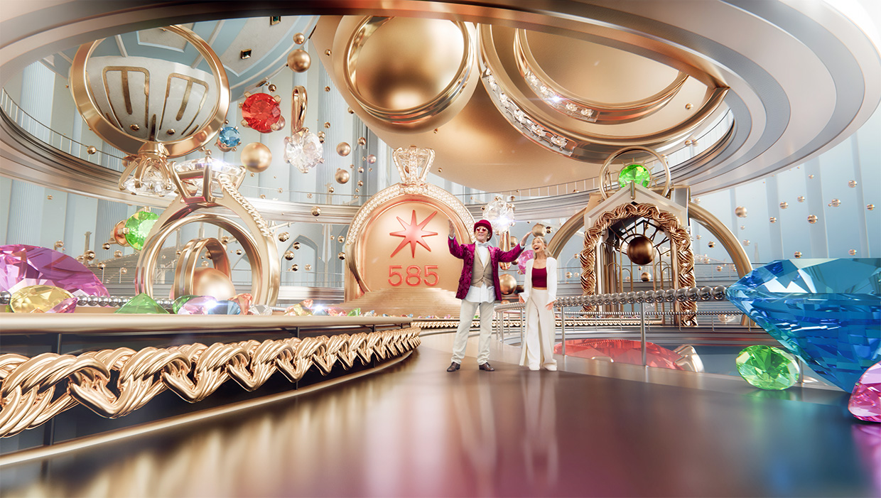 По сюжету ролика, главная героиня сидит дома на диване, грустит и мечтает о кольце. И вдруг перед ней предстает Григорий Лепс в роли волшебника. Он переносит девушку в атмосферу сказочной фабрики, где девушка встречает кольцо, которое она загадывала. Действие заканчивается во флагманском обновленном магазине «585 Золотой».Для реализации такой креативной идеи продакшн-команде требовалось совместить реальные съемки, CG-кадры и ИИ-технологии.