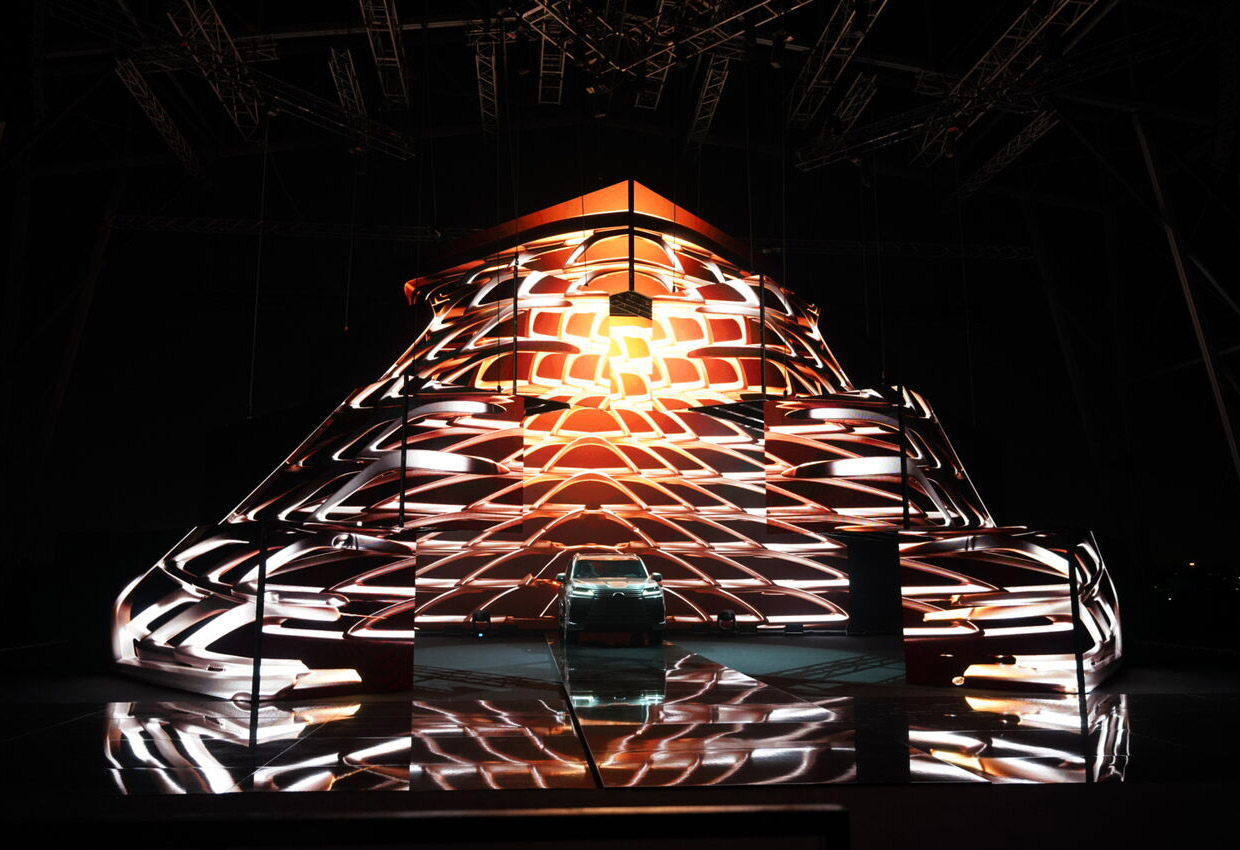 Конструкция из LED-экранов, вдохновленная восточной архитектурой, общей площадью в 236 квадратных метра, 300 секунд уникального 3d-контента, созданного специально для премьеры и раскрывающего концепцию “Beyond Luxury”, световые и аудио-эффекты – вот идеальный микс для ожидаемой мировой авто-премьеры.
