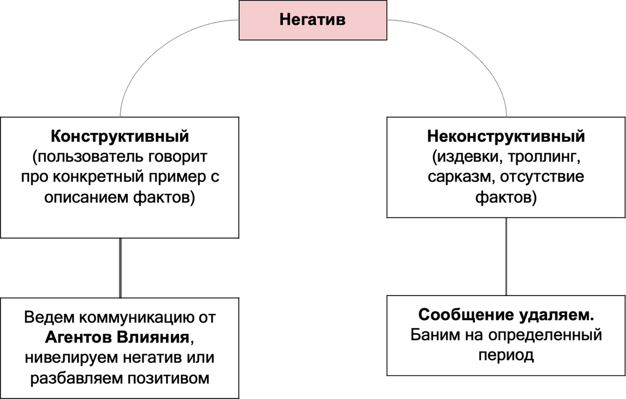 Политика коммуникаций представляет собой карту ответов для качественного реагирования на разнообразные виды комментариев: нейтральные и относящиеся к бренду компании. Скорость реакции — не дольше 30 минут.
