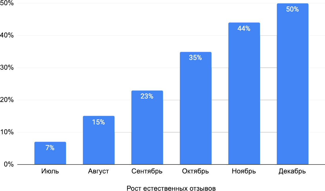 - Рост числа новых отзывов от реальных клиентов на 80%.