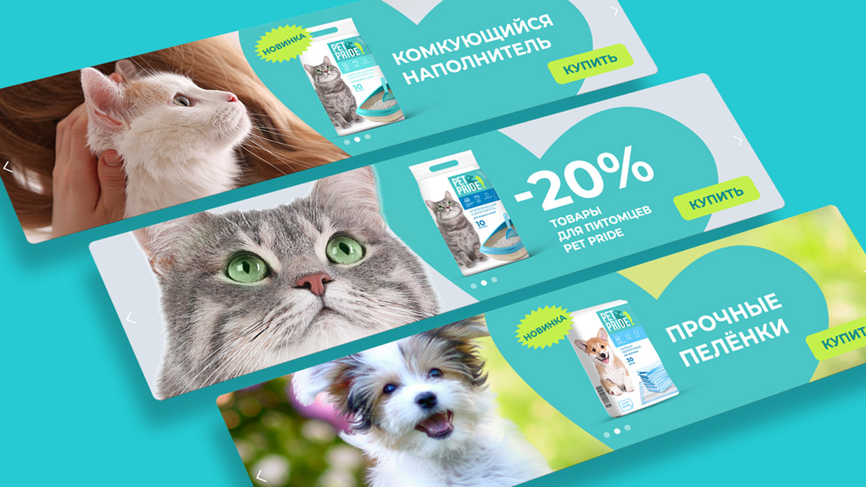 Креативная идея подчёркивает позиционирование, её ключевое сообщение в том, что товары Pet Pride – это чистая любовь.