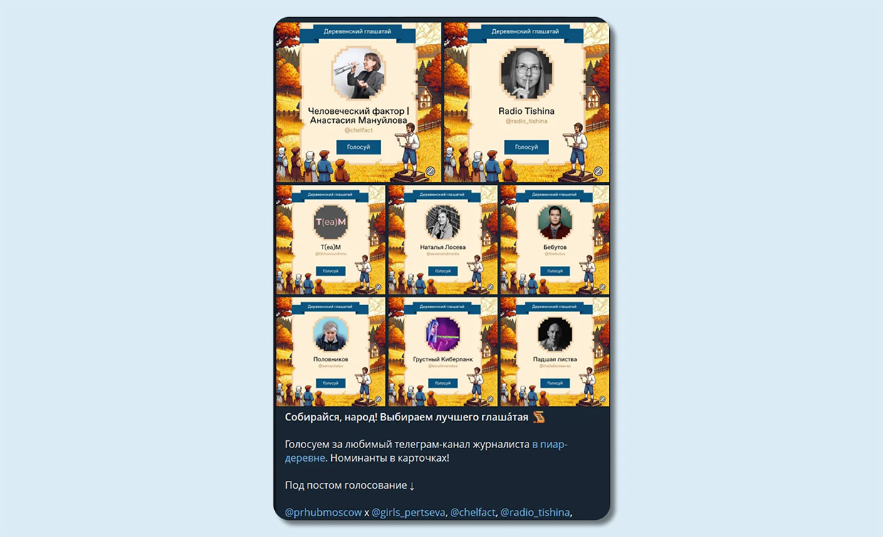 Каждую неделю на канале выходила новая «номинация» — и люди ждали её, как следующую серию сериала. Подписчики спорили, репостили посты, уговаривали друзей голосовать за своих. Вовлекались даже те, кто раньше молчал.