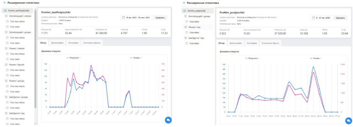Сначала была запущена тестовая рекламная кампания для привлечения подписчиков в группу бренда во ВКонтакте на несколько аудиторий: Домохозяйки, Садоводы, Любители цветов.