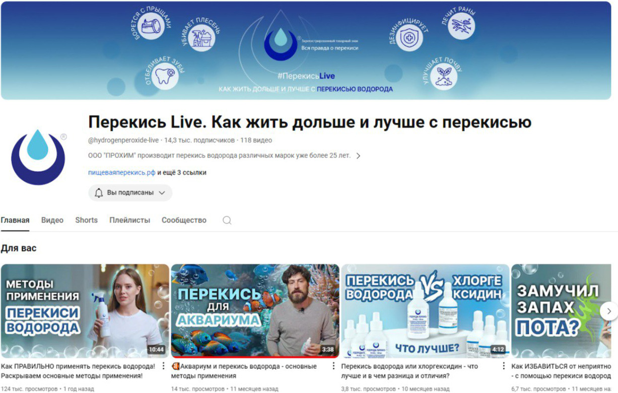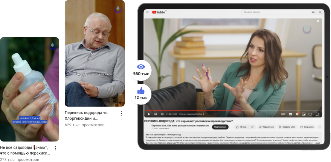 После анализа в YouTube комментариев и обращений к зарубежным видео о различных применениях перекиси водорода, было решено снять большой ролик с участием директора компании.
