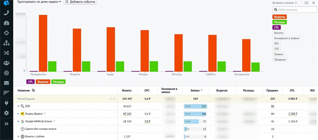 - ROI (ROMI) по каждому рекламному каналу