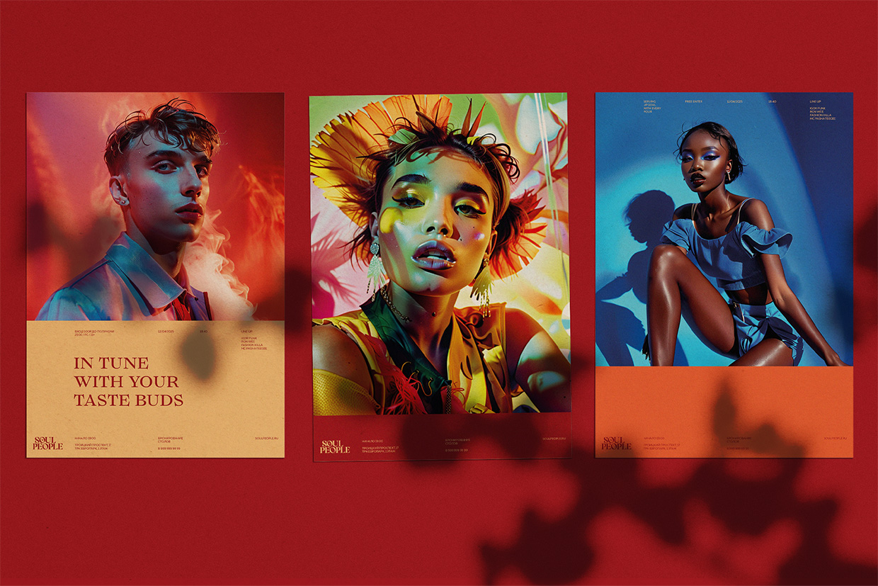 В качестве фотоиллюстраций были выбраны энергичные и модные фотопортреты ярких тусовщиков, которых легко представить в этом заведении.