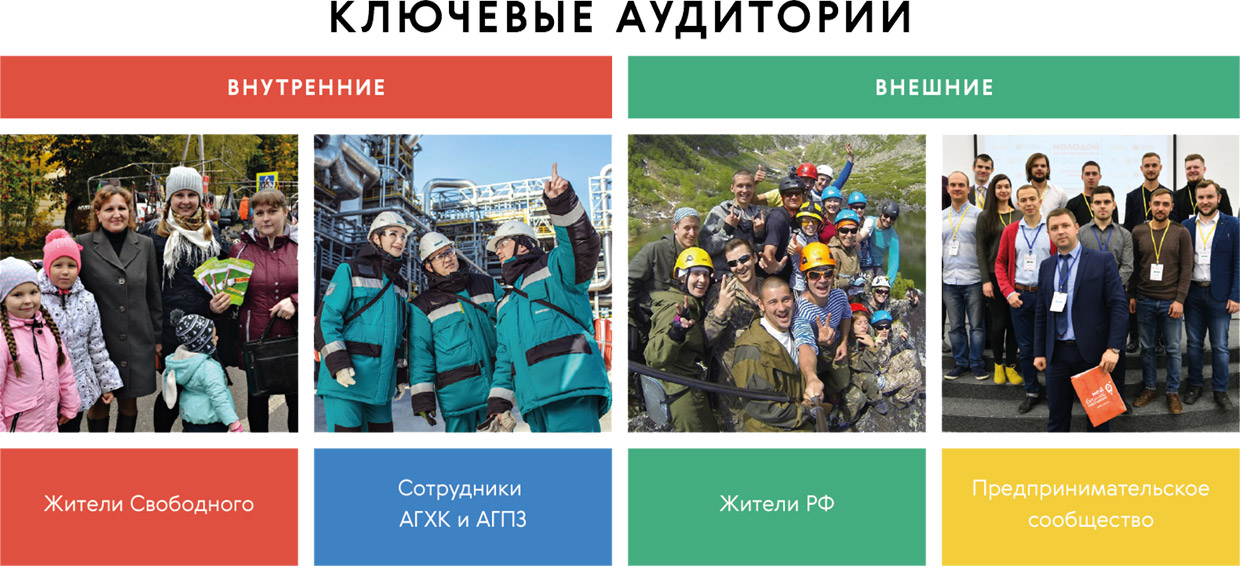 Для работы над платформой бренда было важно проникнуться духом города, услышать настроения и чаяния жителей. Так команда агентства познакомилась с коренными свободенцами, доминирующие черты которых — это суровость, сдержанность и консерватизм. Они крайне настороженно относятся к изменениям, хотя и ожидают их. В свою очередь приезжие сотрудники АГПХ и АГПЗ стали носителями новых моделей потребления и поведения, настроенных на результат и на признание.