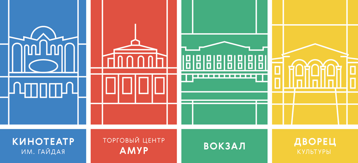 - Стилизованные знаковые архитектурные объекты города