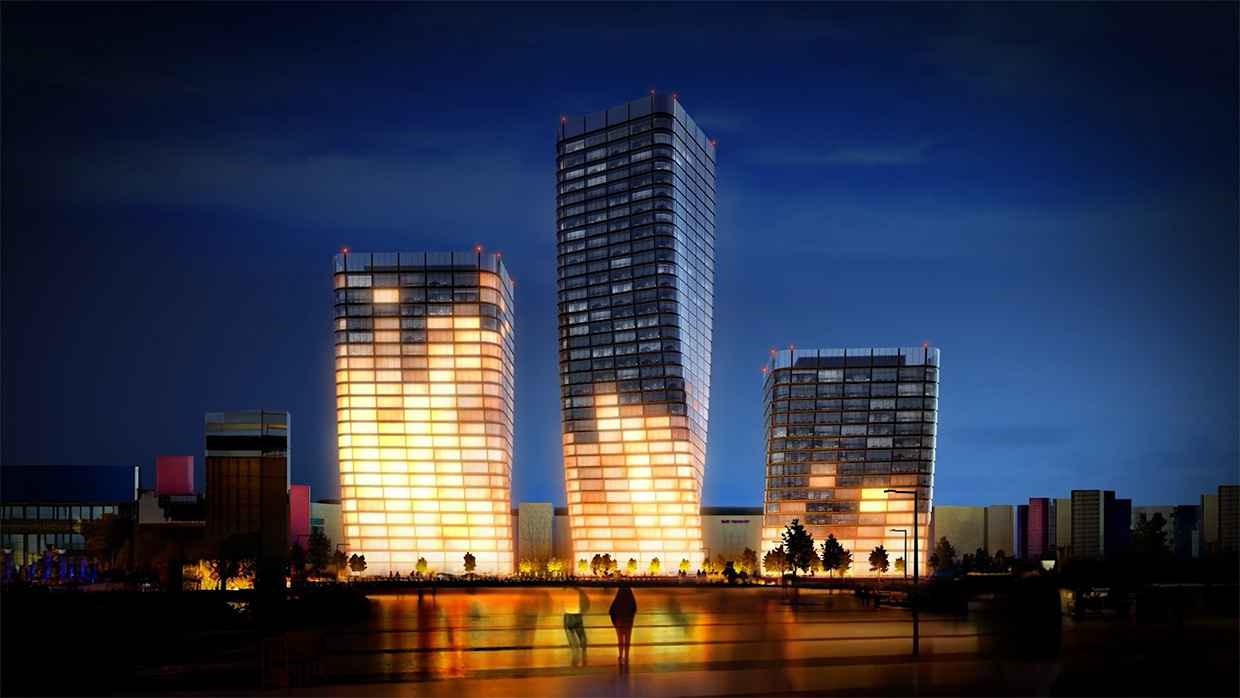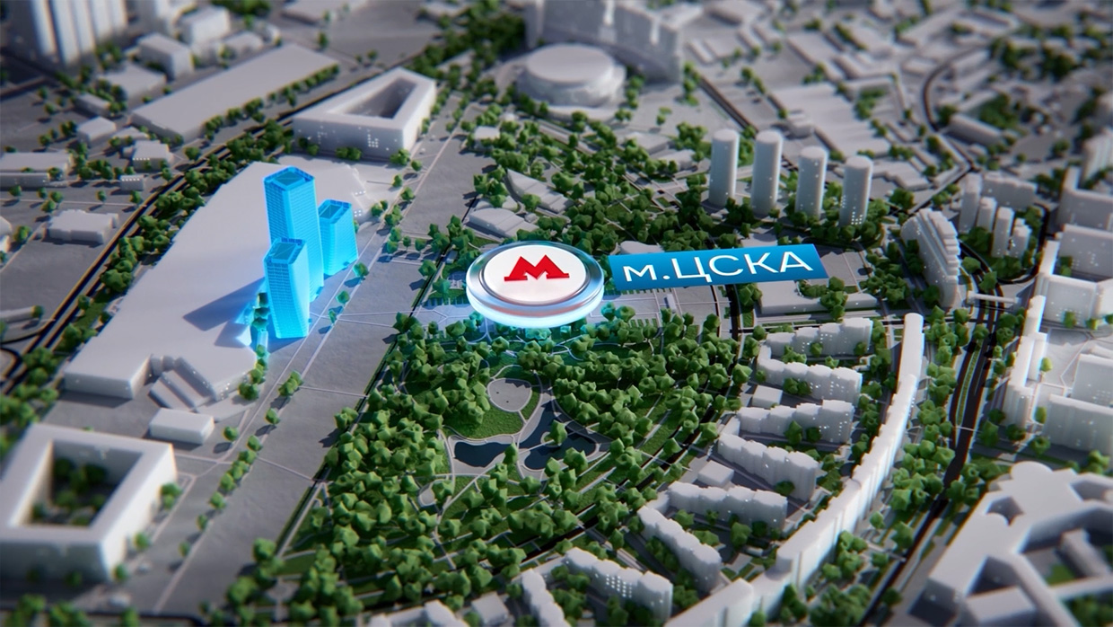 Для того, чтобы проверить, насколько эта идея работает визуально, первоначальная визуализация была сделана с помощью нейронных сетей. Команда Agentura Studio провела тесты: анимировали здания, добавили эффект зажигания света снизу вверх.