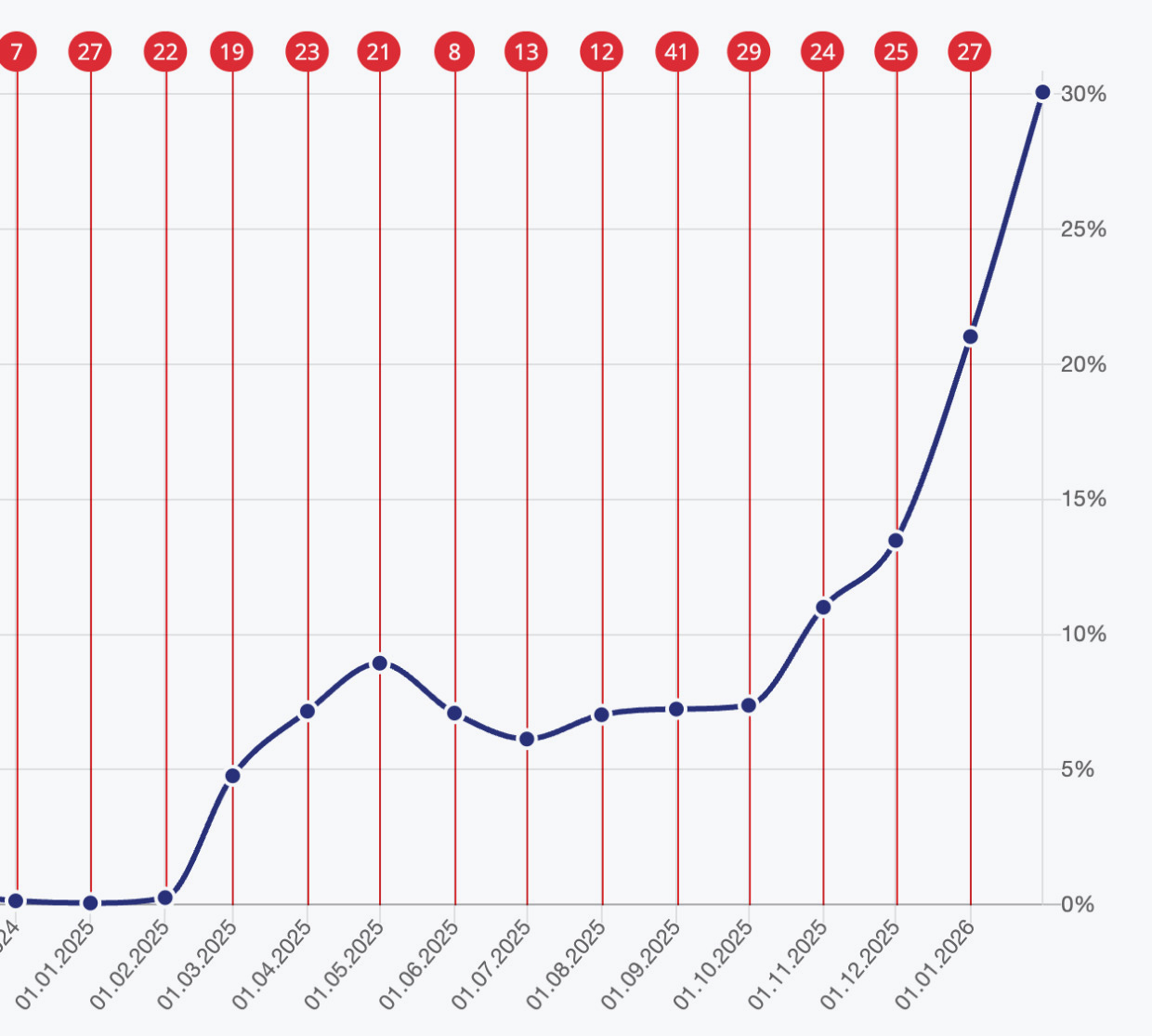 - Прорыв в SEO: видимость проекта в поиске взлетела с 0,26% до 30%.