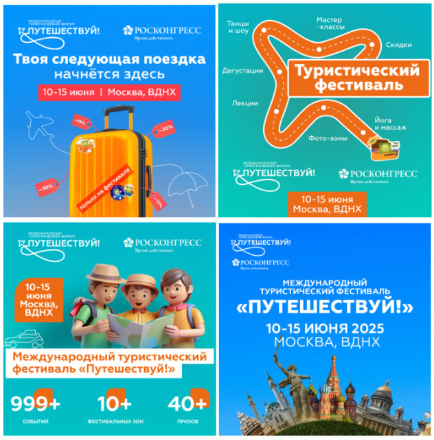 | ВКонтакте | Подписчики сообществ конкурентных выставок (MITT, OTDYKH Leisure), участники групп по B2B-туризму. | Аудитории: Интересуются Бизнесом и инвестициями в туризме, Туризм + Бизнес (B2B). Объявление: «Ваш бренд на виду у 500 000 гостей! Продавайте турпродукты и находите клиентов на главном туристическом событии года. Оставьте заявку!» |