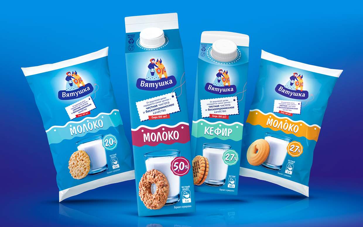 Разработать дизайн упаковки для всей ассортиментной матрицы бренда «Вятушка».