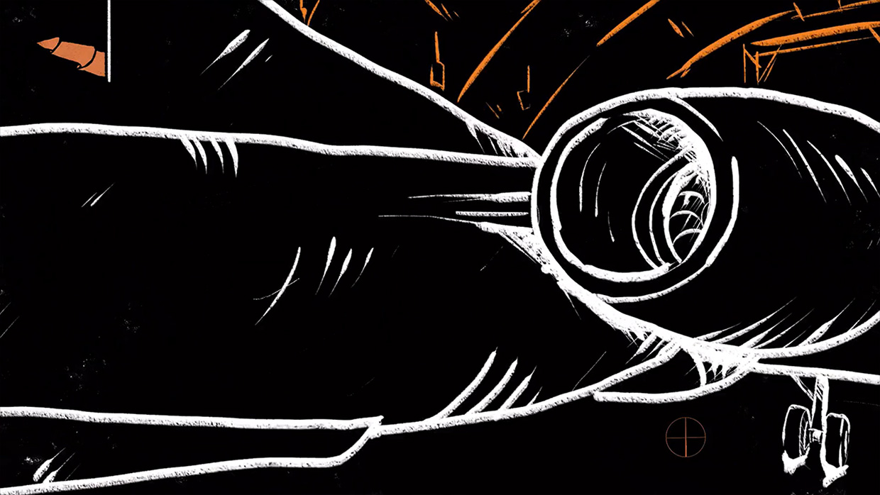 Важным выразительным решением стали 2D-переходы — стилизованные анимации, которые связывали блоки между собой. Их нужно было нарисовать до съёмок, по сценарию. Это решение потребовало доверия к структуре и уверенности в том, что команда угадает ритм финального монтажа.