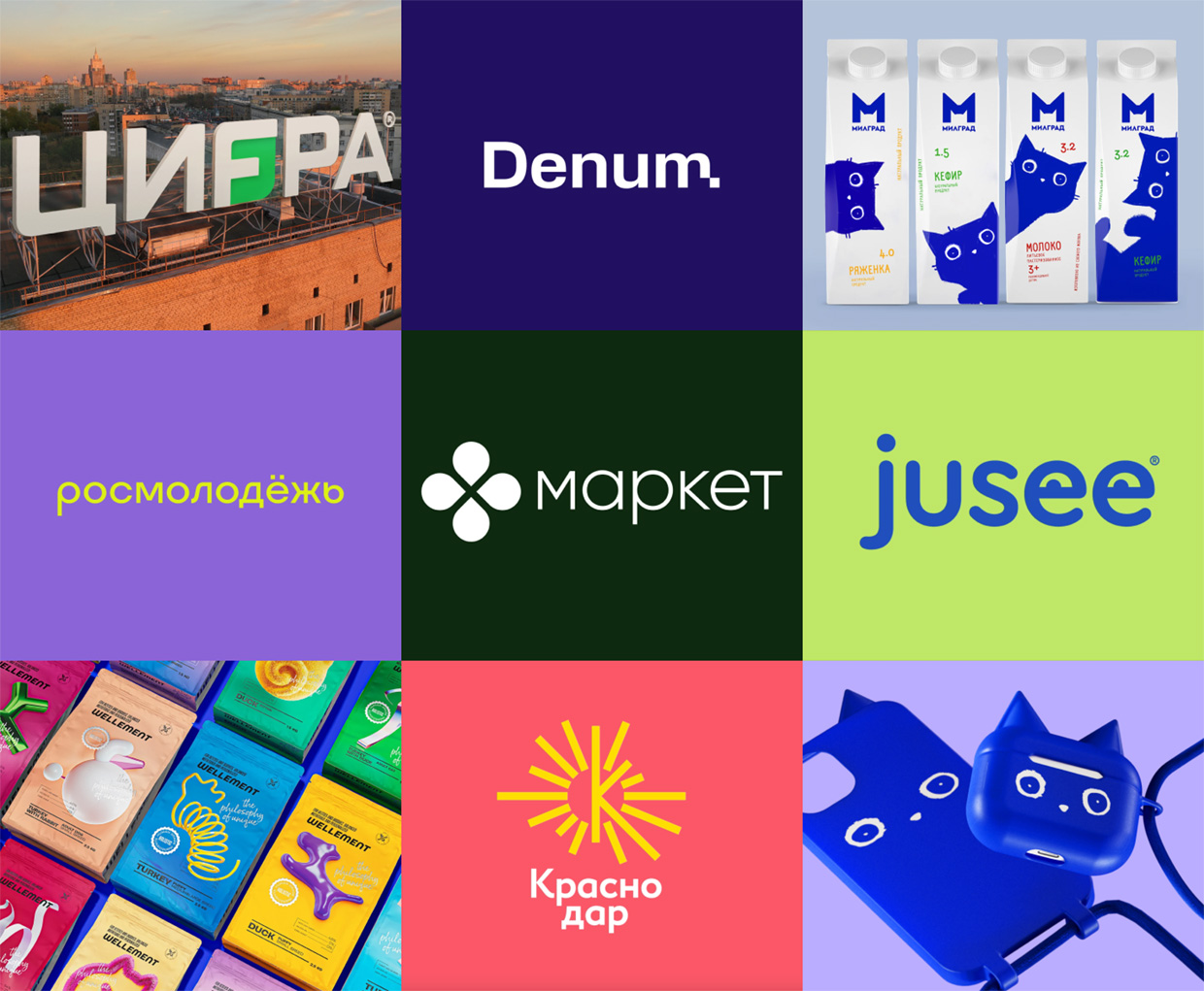 Среди реализованных проектов агентства: Платёжная система «МИР» и «Система быстрых платежей», ребрендинг ПСБ, создание бренда дискаунтера «Чижик» и новый визуальный стиль собственной торговой марки «Перекрёсток» для Х5 Retail, а также Junion для Яндекс.Маркета, активное сотрудничество с компанией «ЭкоНива», ребрендинг аудиторской компании большой четвёрки «KEPT», российская адаптация международной сети ресторанов общественного питания «Rostic’s», ребрендинг для российского блогера Руслана Усачева, разработка айдентики города Краснодар, а также перезапуск сети крупного зоо-ритейлера «Четыре лапы» с новыми айдентикой и позиционированием и многие другие.