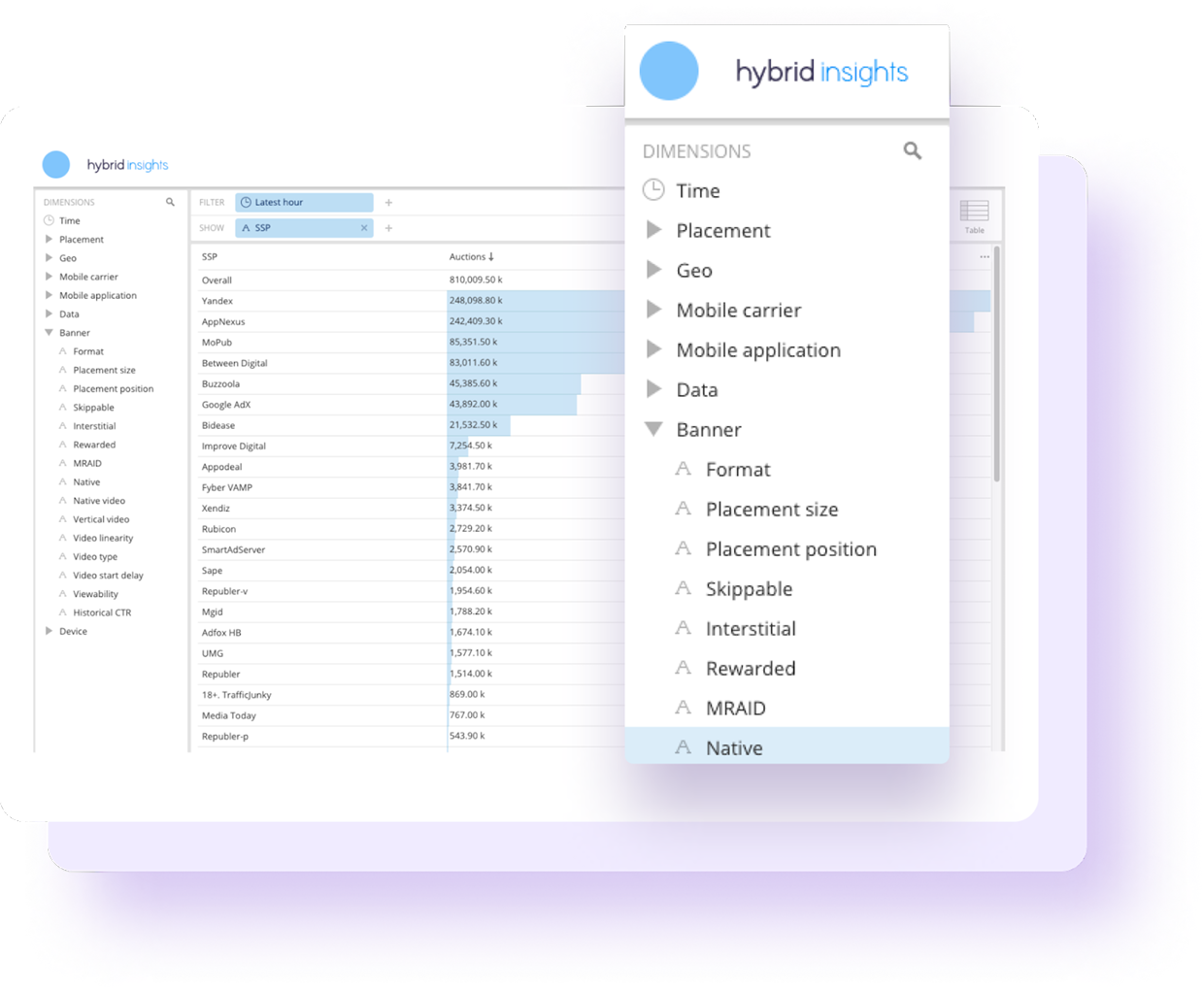 HYBRID.AI является одной из ведущих DSP-платформ в России, предоставляющей возможности для построения собственной программатик-экосистемы и автоматизации закупок рекламного инвентаря на основе больших данных.