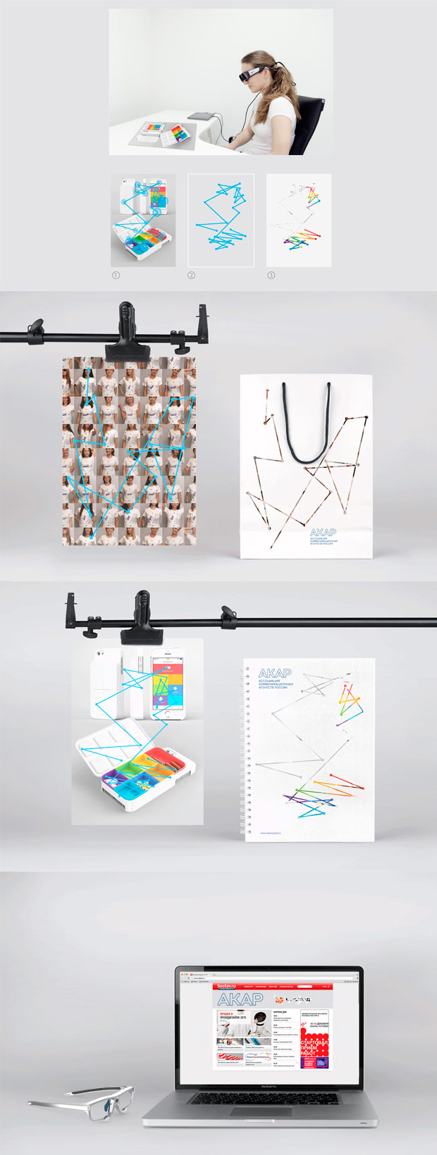 Команда агентства решила оставить глаз в качестве центрального символа, но из образа он превратился в инструмент — средство создания нового фирменного стиля АКАР. С помощью системы айтрекинга, предоставленной специально для проекта партнерами ассоциацции — агентством TNS Russia, были проведены замеры, которые показали, как человеческий взгляд взаимодействует с рекламой. В роли «подопытных» образцов выступили лучшие российские рекламные, маркетинговые и брендинговые проекты года по версии рейтинга АКАР.