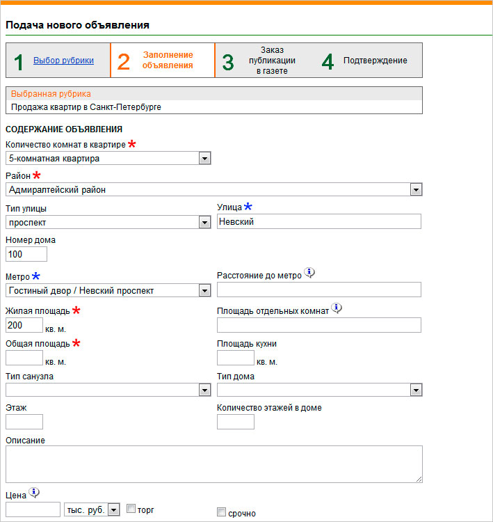 Создание объявления о продаже квартиры