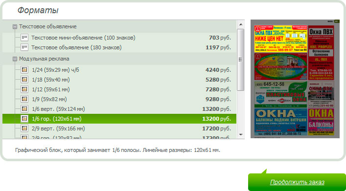 В результате, система формирует рекламный блок для предварительного просмотра и предлагает перейти к оплате, которая, к слову, также может быть осуществлена онлайн через популярные платежные системы.