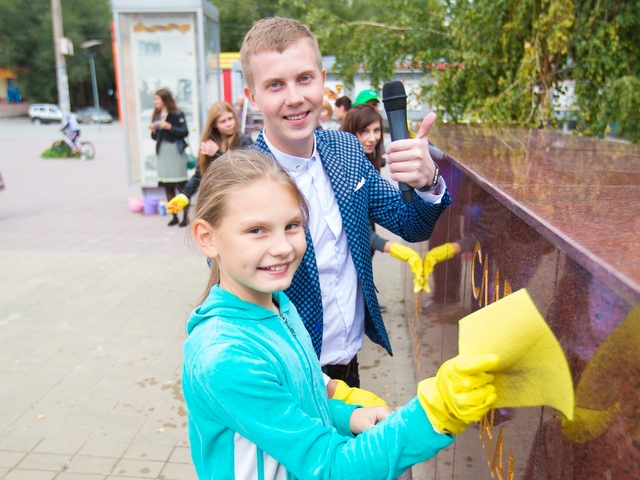 К делу перешли довольно скоро: инициативные группы из жителей принялись мыть памятник и обустраивать территорию сквера. Активное участие принимали и особенные гости – ветераны Великой Отечественной Войны.