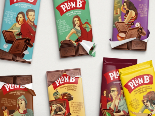 На упаковке Plan B изображаются ситуации тревоги или дискомфорта, знакомые каждому, и шутливо обыгрывается, как шоколад помогает решить проблему. Ироничная, но при этом жизнеутверждающая интонация, с которой Plan B обращается к потребителям, понятна всем и никого не оставляет равнодушным.
