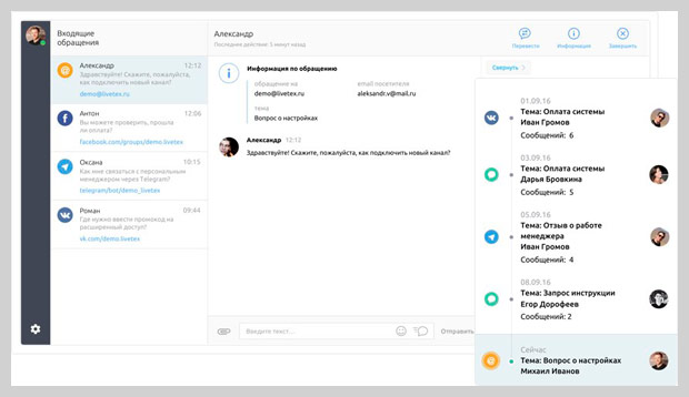 «Платформа LiveTex — полностью гибкая изнутри система, но с очень жестким бизнес-каркасом. Она позволяет держать большие объемы онлайн-взаимодействия в заданных рамках и поддерживать единые стандарты цифровых коммуникаций в компании вне зависимости от ее величины и организационной структуры, практически исключая пресловутый человеческий фактор.