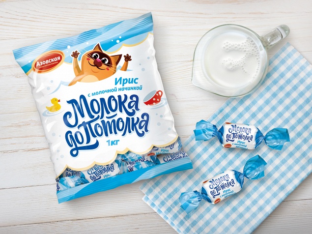 «Молока до потолка» — новый бренд молочного ириса, созданный Depot WPF для «Азовской кондитерской фабрики».