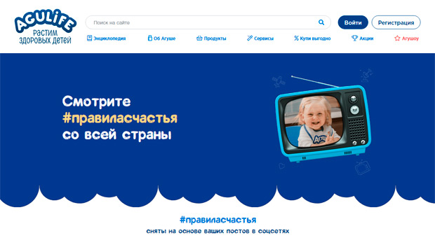 Весной 2018 года бренд детского питания «Агуша» провел в социальных сетях масштабный флешмоб #правиласчастья. Мамы из всех городов России публиковали правила своих детей, которые приносят им настоящую радость: выкладывали трогательные фотографии, видео и тексты, описывающие любимые дела малышей.
