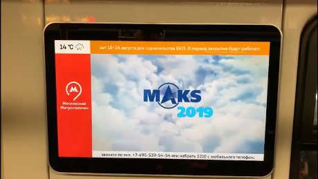 Реклама на видеоэкранах позволяет размещать full motion видео, которое привлекает внимание пассажиров во время поездки.«МАКС является крупнейшим выставочным проектом и масштабным шоу, привлекающим сотни тысяч посетителей.
