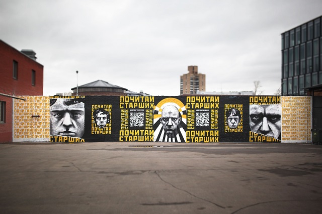 На фоне стены уже делают фото посетители Винзавода — их легко найти по хэштегу #почитайстарших