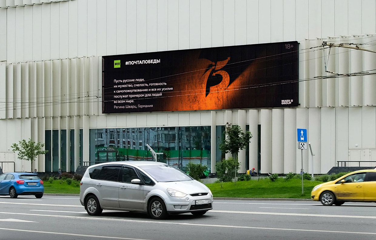 Проект телеканала RT #ПочтаПобеды будет показан на премиальных медиафасадах MAER Group