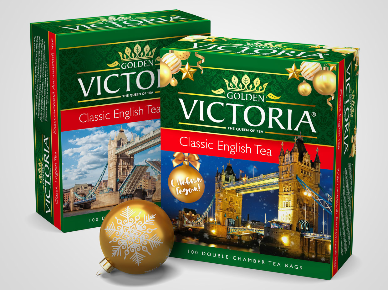 По заказу индийской компании Jay Tea, агентством Omnibus был разработан дизайн новогодней промо-упаковки для чая Golden Victoria «Классический Английский».