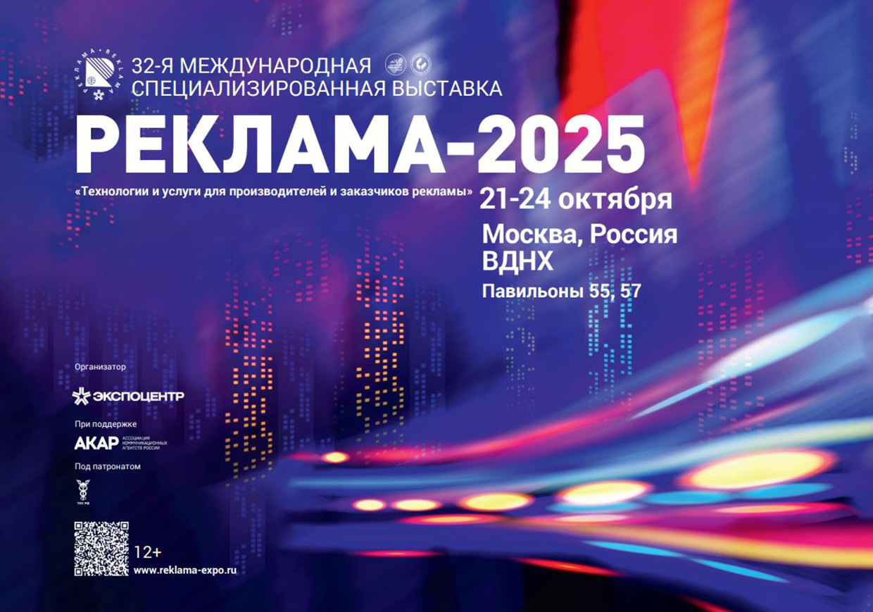 С 21 по 24 октября 2025 года на ВДНХ в павильонах 55 и 57 пройдет 32-я международная специализированная выставка технологий и услуг для производителей и заказчиков рекламы — «Реклама-2025».