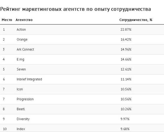 Оценка агентств осуществлялось по показателю доли сотрудничества в семи сегментах: