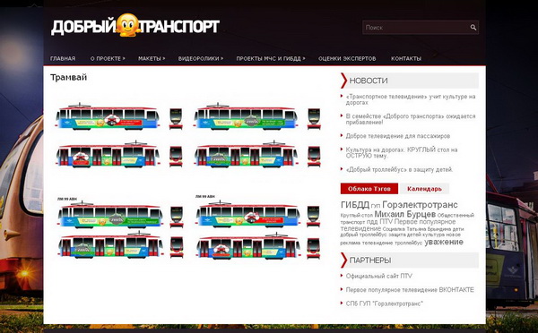На сайте добрыйтранспорт.рф размещены не только данные о проекте, здесь можно увидеть макеты оклейки транспорта, стикеры нового поколения, а так же примеры видеороликов социальной рекламы.