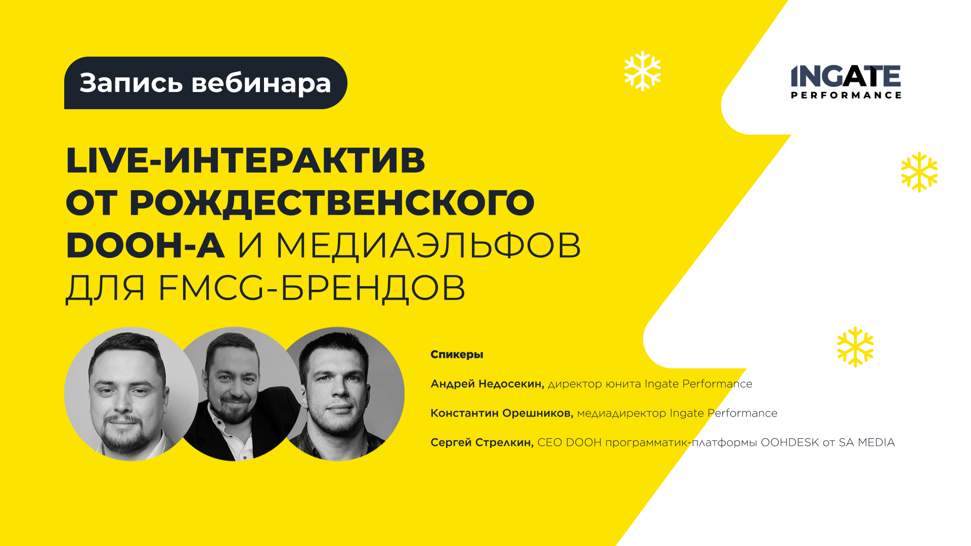 12 декабря 2023 года эксперты агентства Ingate Performance и платформы OOHDESK расскажут о прогнозах рынка FMCG и маркетинговой стратегии брендов, а также обозначат тренды 2024 года.