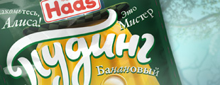 «Понимая, что в таком оформлении продукт выглядит скучновато и недостаточно аппетитно, мы решили подать пудинги HAAS в игровой форме, - объясняет креативный директор Depot WPF Алексей Фадеев. - Поэтому на упаковках мы изобразили одушевленных персонажей: каждого со своим характером (Мистер Пудинг Ванильный, Мистер Пудинг Шоколадный и Мистер Пудинг Банановый). Иллюстрации и размещенный на лицевой стороне диалог («Знакомься, Алиса…») привлекают внимание потребителей и одновременно указывают на то, что продукт создан для детей».