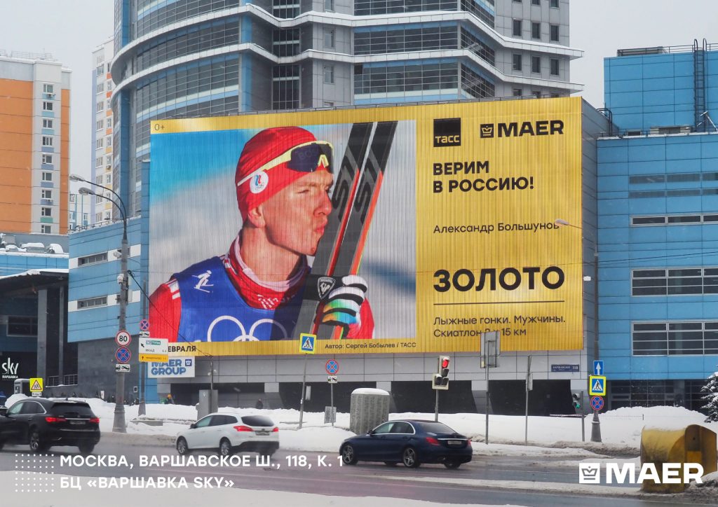 С началом зимней Олимпиады-2022 россияне увидели спортивных героев в беспрецедентном масштабе. Фотографии призеров и победителей зимних Игр-2022 ежедневно транслируются на крупноформатных рекламных экранах медиахолдинга MAER.