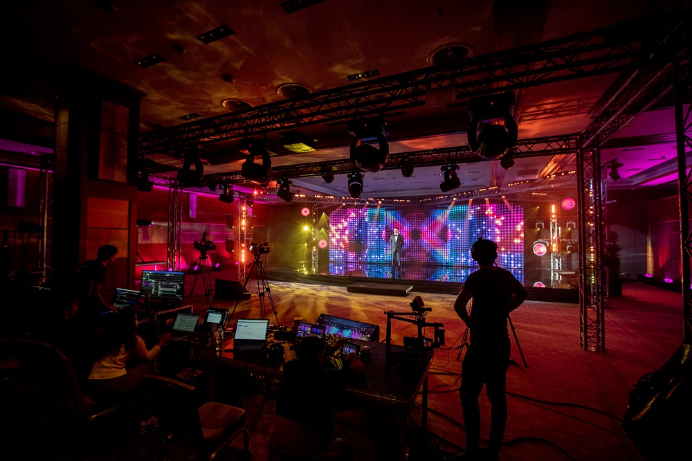 Event-студия «ABD: Entertainment» в сотрудничестве с компанией Raketa Media раскрыла возможности дополненной реальности для онлайн-мероприятий. Презентация состоялась 16 июня в гостинице «Украина» (Radisson Collection Moscow), где и работает новая онлайн-студия.