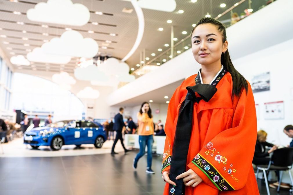 В welcomе-зоне работали девушки Hostess в традиционных корейских национальных костюмах – ханбок.
