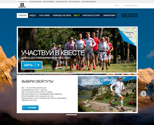 Проект Salomon «Выбери свой путь» стартовал 29 августа 2013 года при непосредственном участии digital-агентства Mediastars, ответственного за организацию, проведение и информационную поддержку проекта.