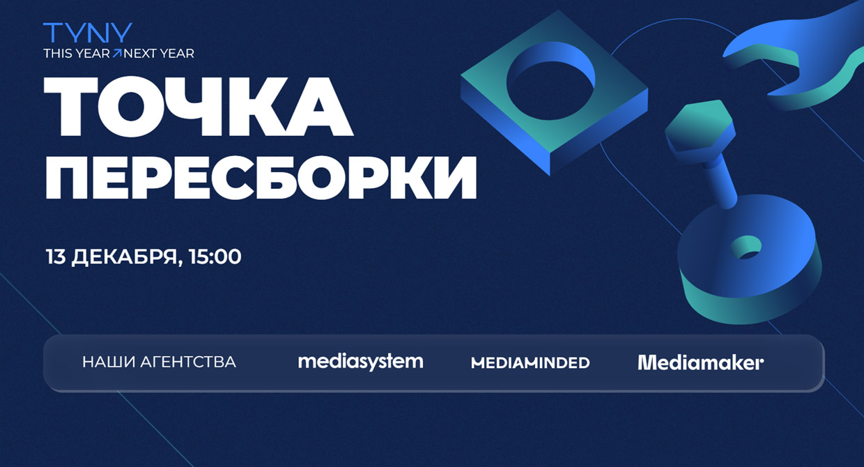 13 декабря 2022 года состоится конференция «This Year Neхt Year» – ежегодная конференция медиахолдинга Group4Media, на которой эксперты подводят итоги уходящего года, обсуждают горячие тренды и актуальные вопросы, делятся прогнозом медиарынка на следующий год. Тема конференции – «Точка пересборки». Событие пройдет в формате онлайн-трансляции.
