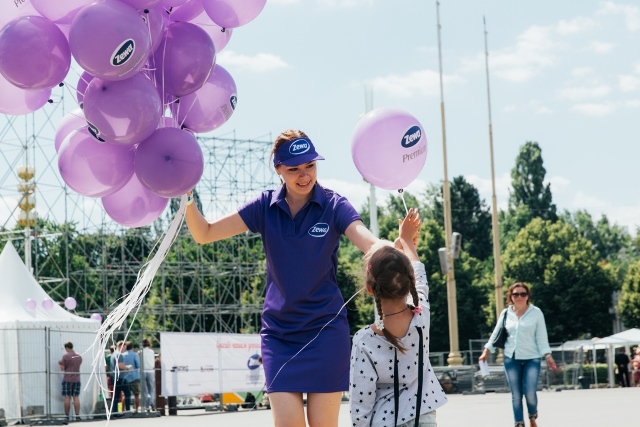 На фестивале также работала промокоманда, которая раздавала сэмплы бумажных полотенец Zewa Premium, а детишек радовала брендированными воздушными шарами.